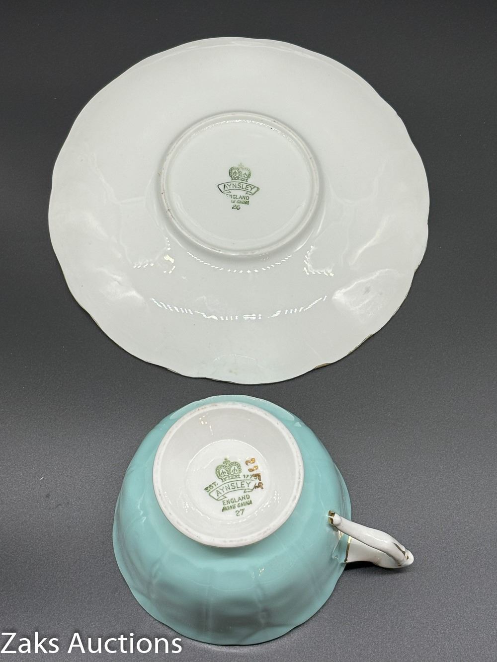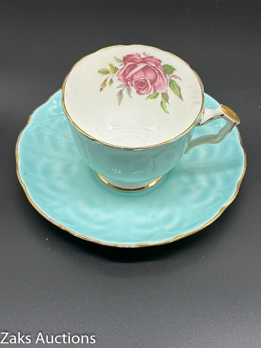 AYNSLEY LARGE CABBAGE ROSE BLUE LUSTRE TEA CUP