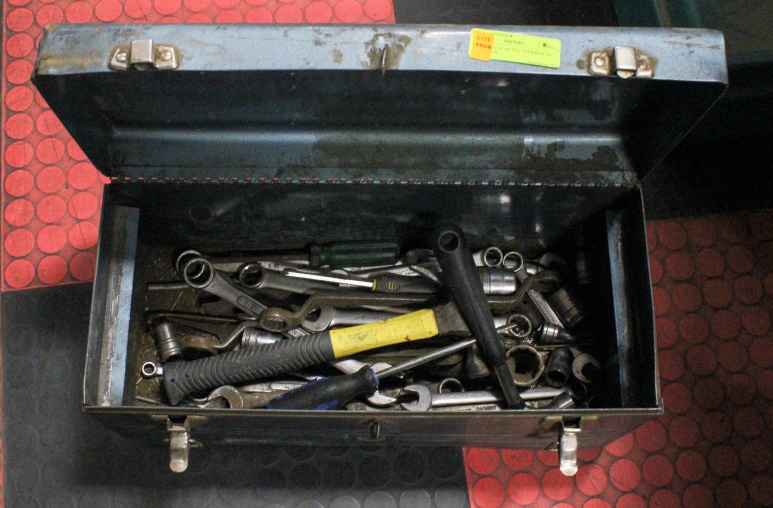 BLUE BEACH METAL TOOLBOX W/ CONTENTS