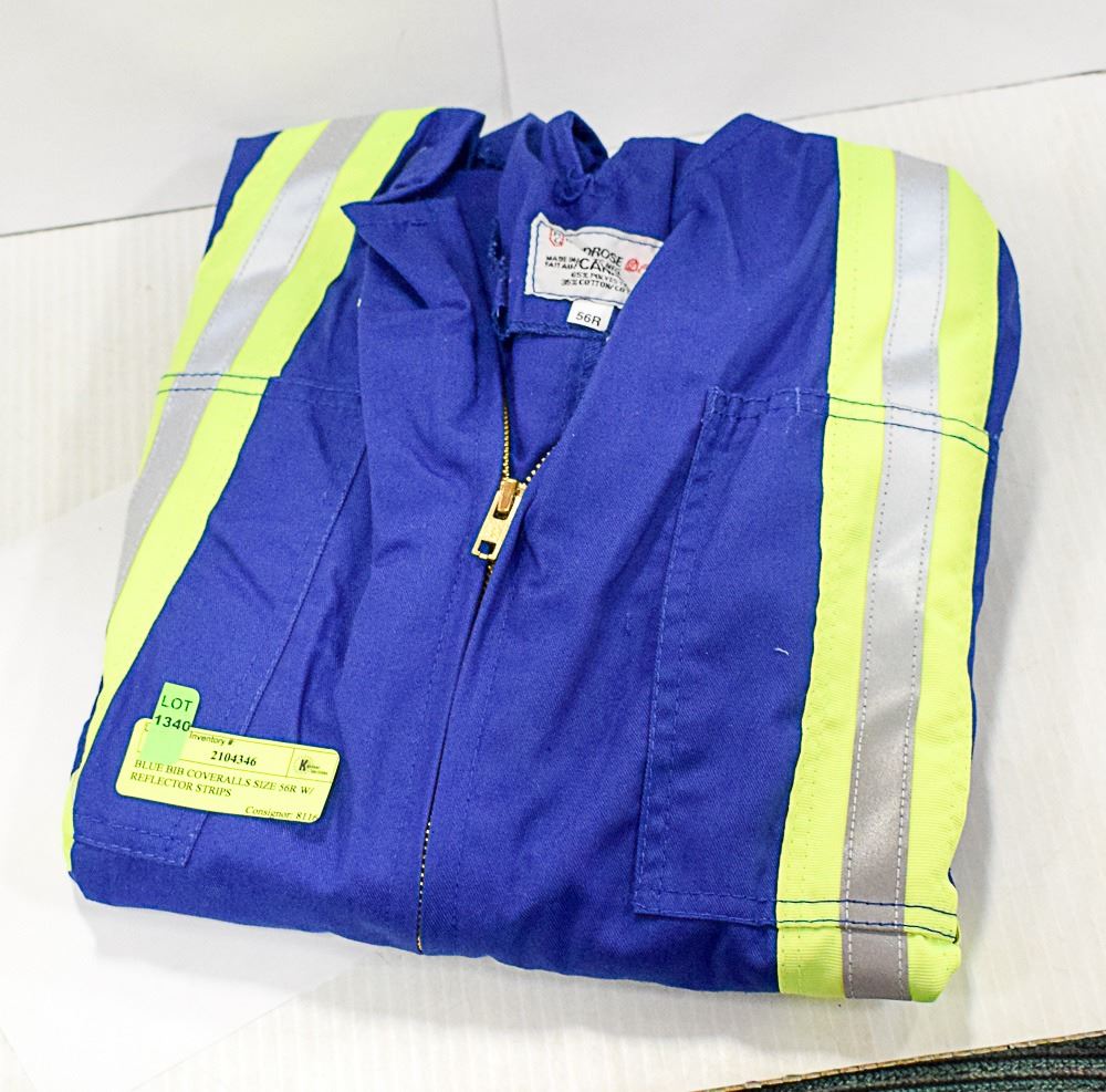 BLUE BIB COVERALLS SIZE 56R W/ REFLECTOR STRIPS