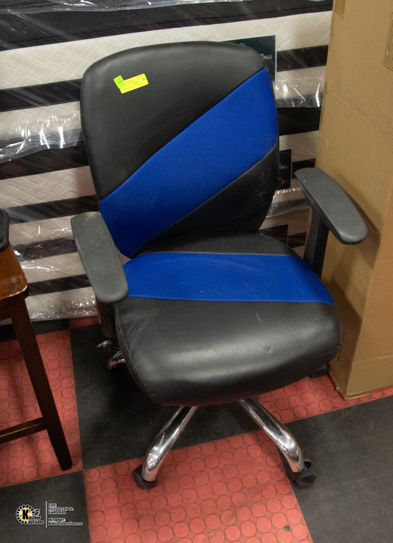 BLUE & BLACK HYDAULIC LIFT OFFICE CHAIR