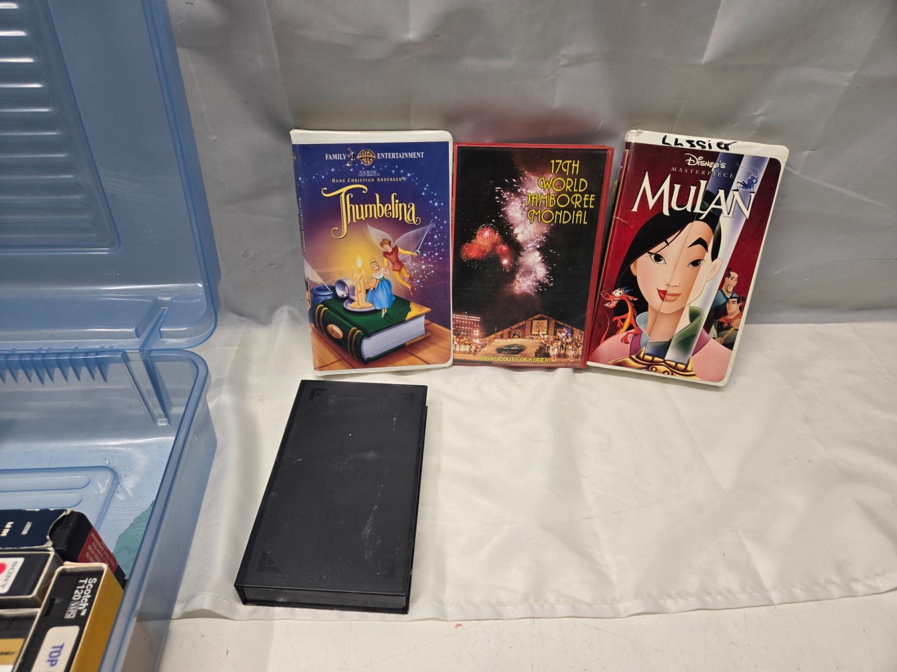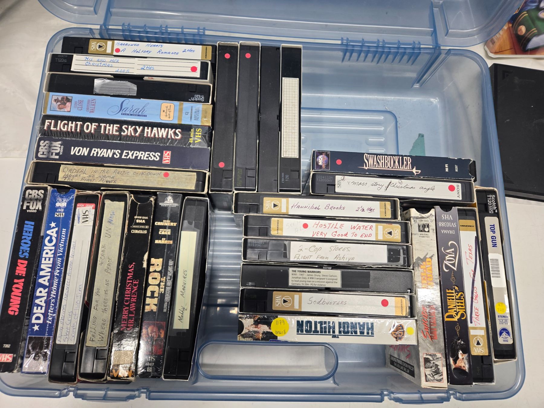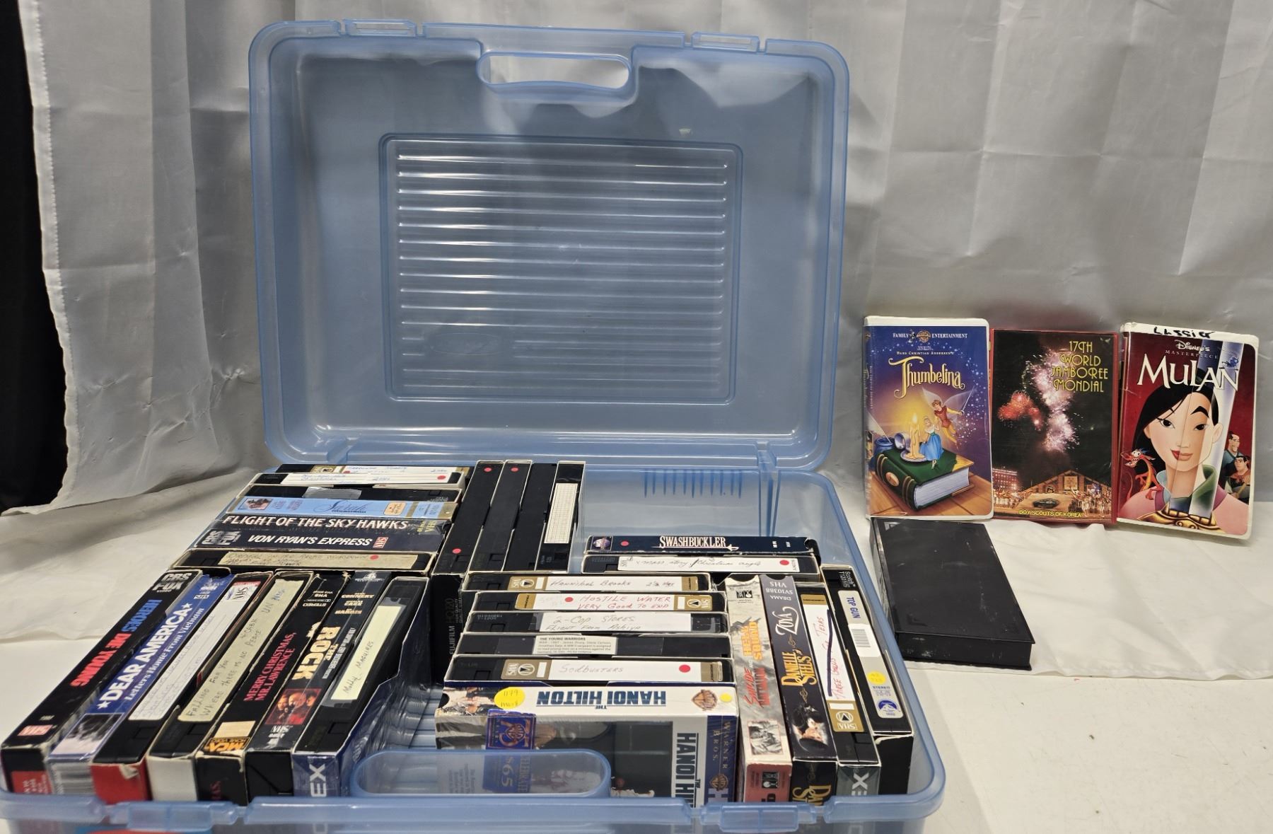 BLUE CASE WITH VHS TAPES.