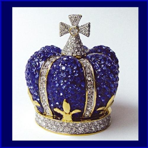 BLUE CROWN 24K GOLD SWAROVSKI CRYSTAL JEWELRY BOX