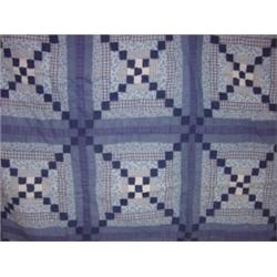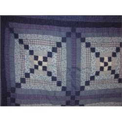 BLUE DECORATED SQUARE PATTERN QUILT.