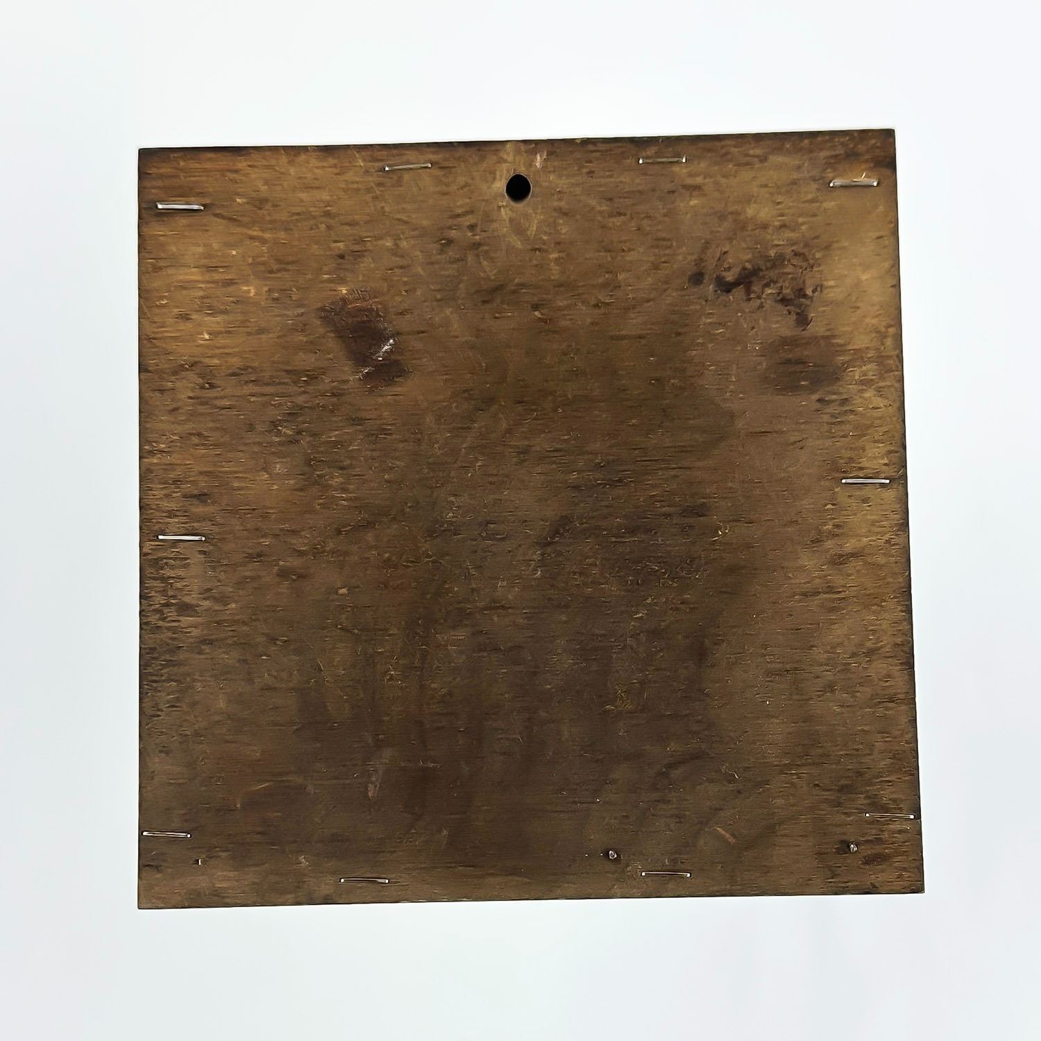 #9093 - BLUE DELFT STYLE TILE - HOLLAND WINDMILL THEMED BLUE DELFT STYLE CERAMIC TILE - WOODEN SOUVENIR SPOON RACK WALL DECOR SCULPTURE. MEASURES: 5.5” (14 CM) SQUARE