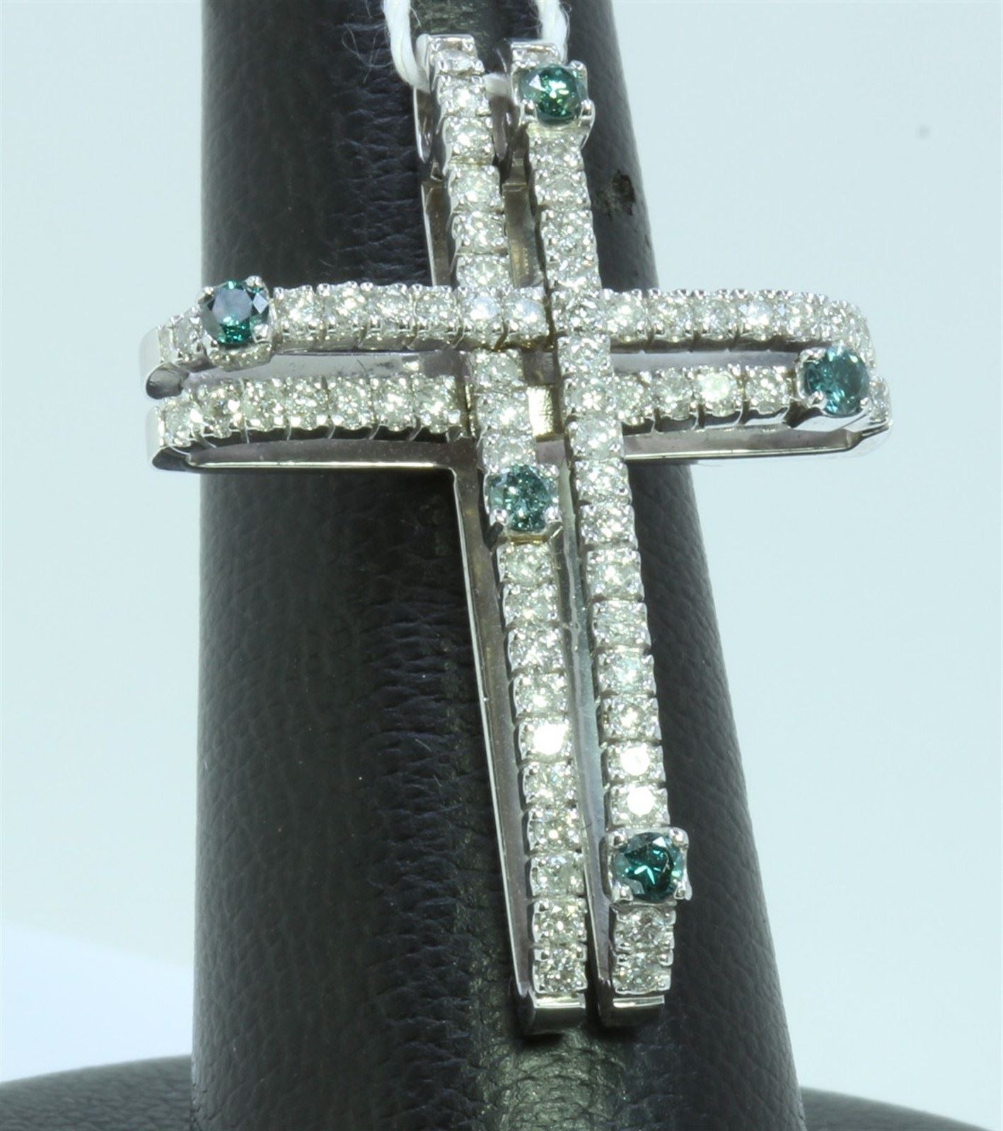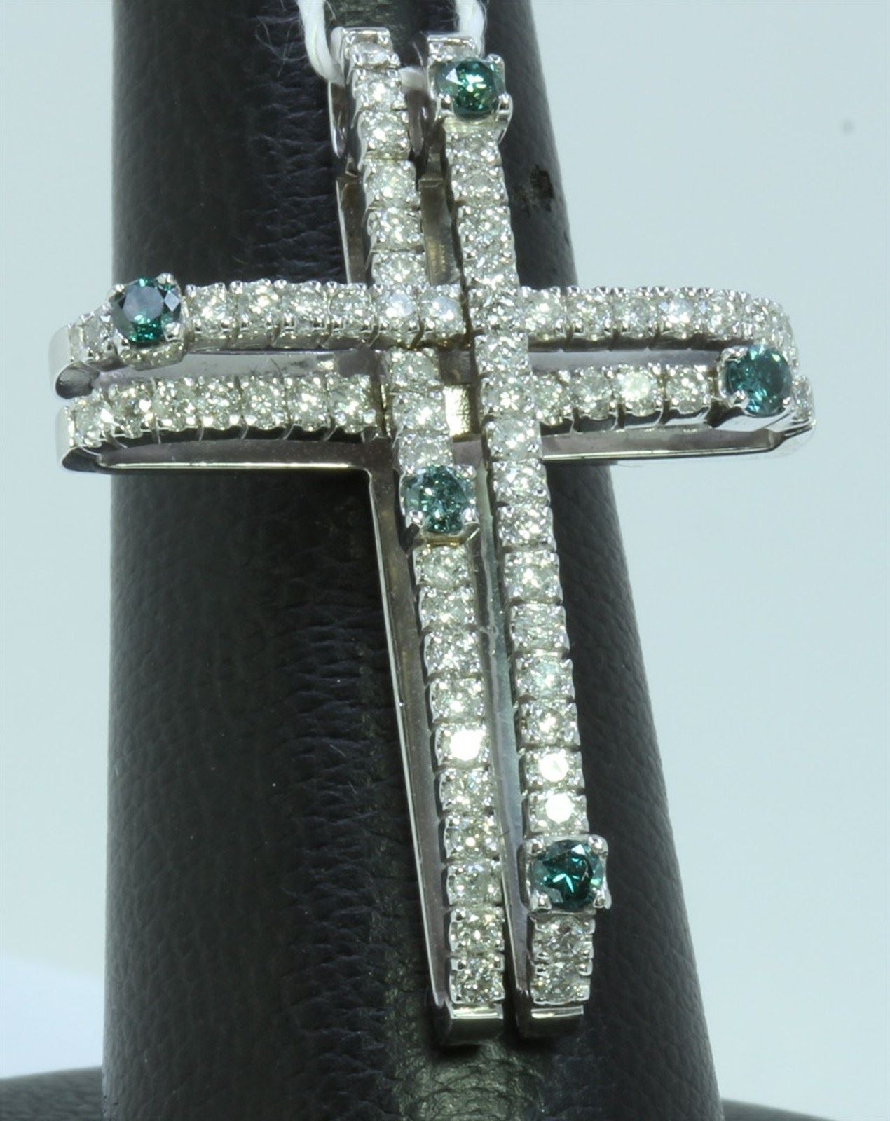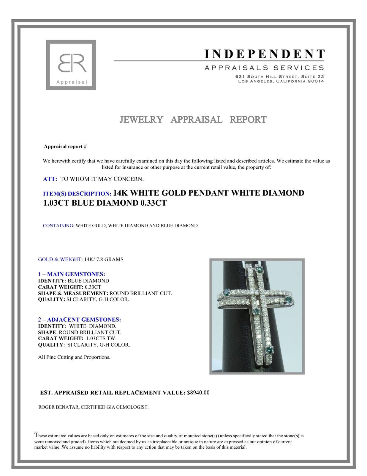 14K WHITE GOLD PENDANT 7.80GRAM WHITE DIAMOND 1.03CT BLUE DIAMOND 0.33CT