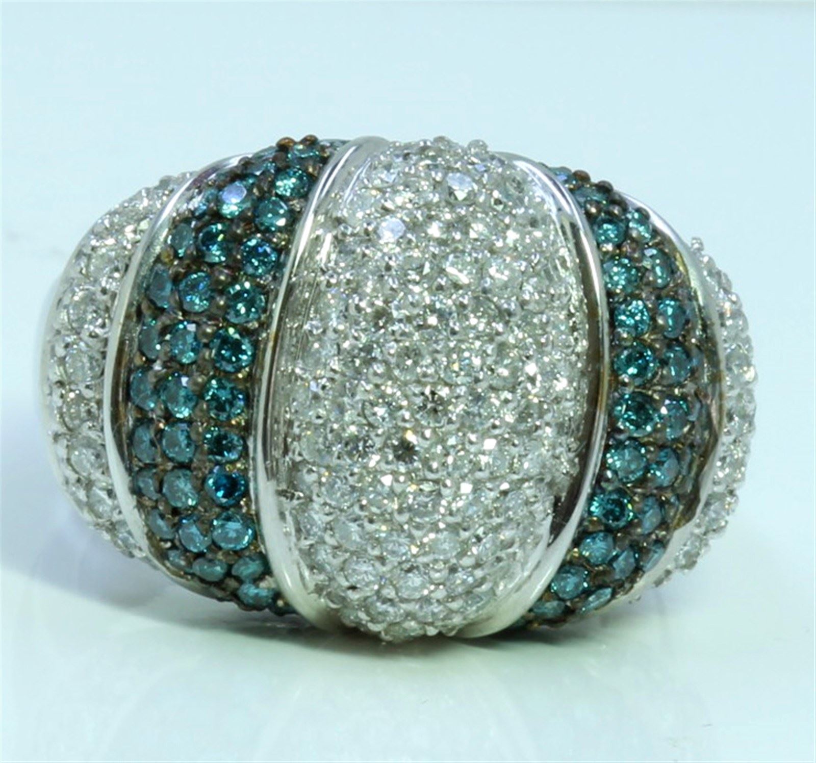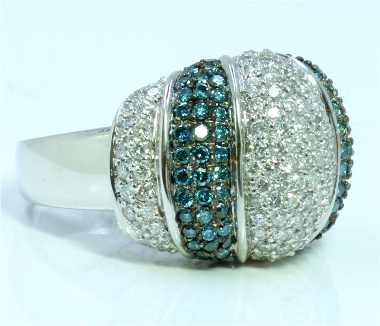 14K WHITE GOLD RING 13.5GRAM / BLUE DIAMOND 0.87CT / WHITE DIAMOND 1.59CT GH COLOR Si CLARITY