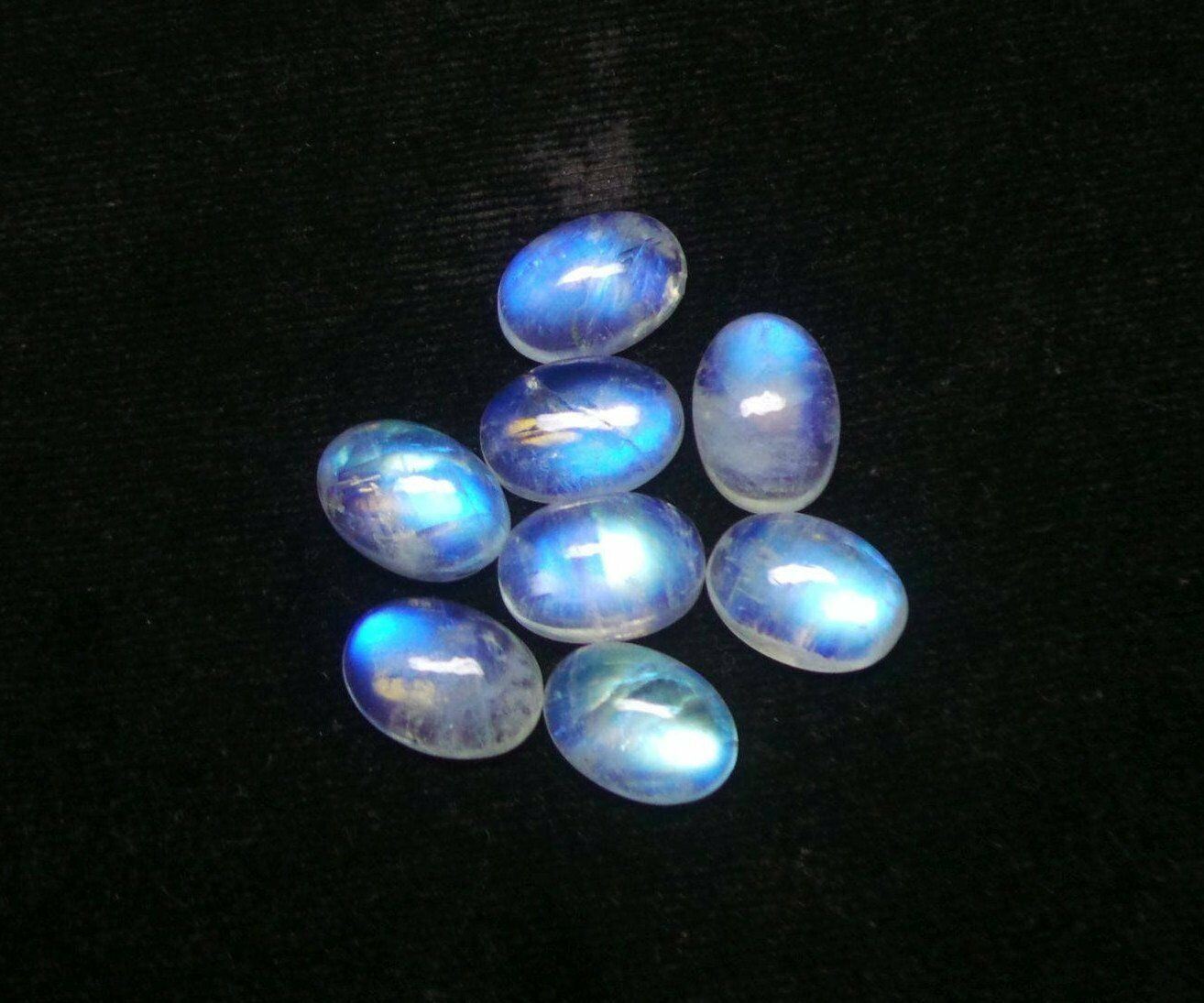 GEMSTONE - RAINBOW MOONSTONE , SHAPE - OVAL CABOCHON , SIZE - 11X9 MM , QUANTITY - 50 PIECES , WEIGHT - 205.00 Cts. , COLOR - RAINBOW , NATURAL/LAB CREATED - NATURAL , TREATMENT - NONE , COUNTRY OF ORIGIN - AFRICA , COUNTRY OF MANUFACTURE - INDIA