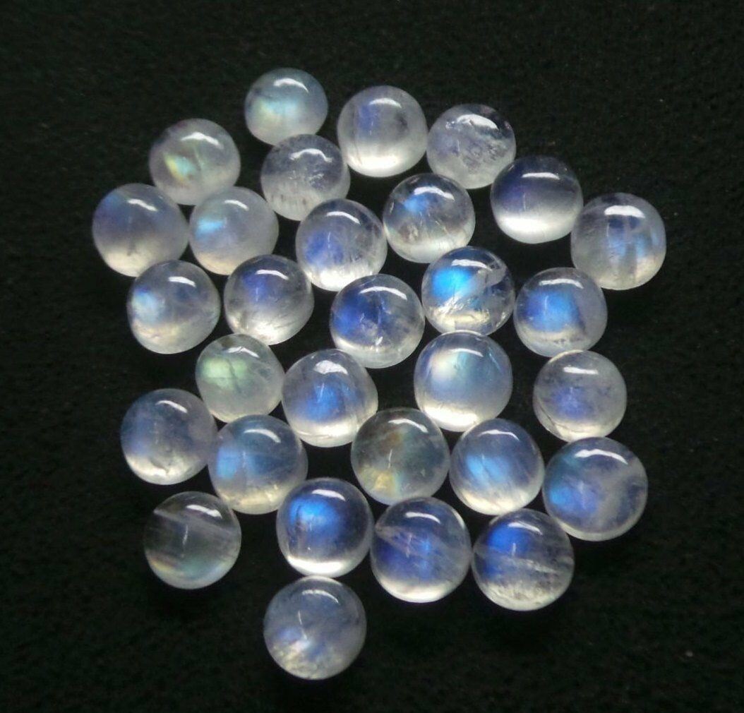 GEMSTONE - RAINBOW MOONSTONE , SHAPE - ROUND CABOCHON , SIZE - 8X8 MM , QUANTITY - 40 PIECES , WEIGHT - 91.20 Cts. , COLOR - RAINBOW , NATURAL/LAB CREATED - NATURAL , TREATMENT - NONE , COUNTRY OF ORIGIN - AFRICA , COUNTRY OF MANUFACTURE - INDIA