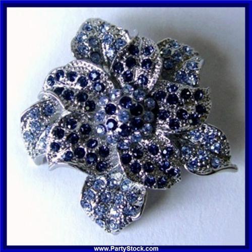 BLUE FLOWER PIN BROOCH ALL SWAROVSKI CRYSTAL GOLD