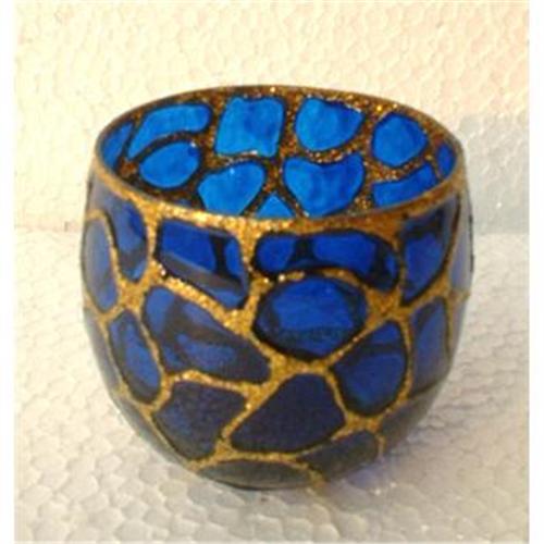 The glass is made of transparent glass but is well painted from top to bottom in vibrant blue color. There are various different blocks made by outlining in golden color. Every block is given unique design and no two blocks are with same dimensions or shape. This is a very fine glass for collectors.The glass is in over all good condition except slight paint which has come off brom the bottom.