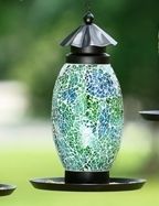 BLUE MOSAIC GLASS BIRD FEEDER - 10.5"H 7"W 7"D - GLASS & ALUMINUM