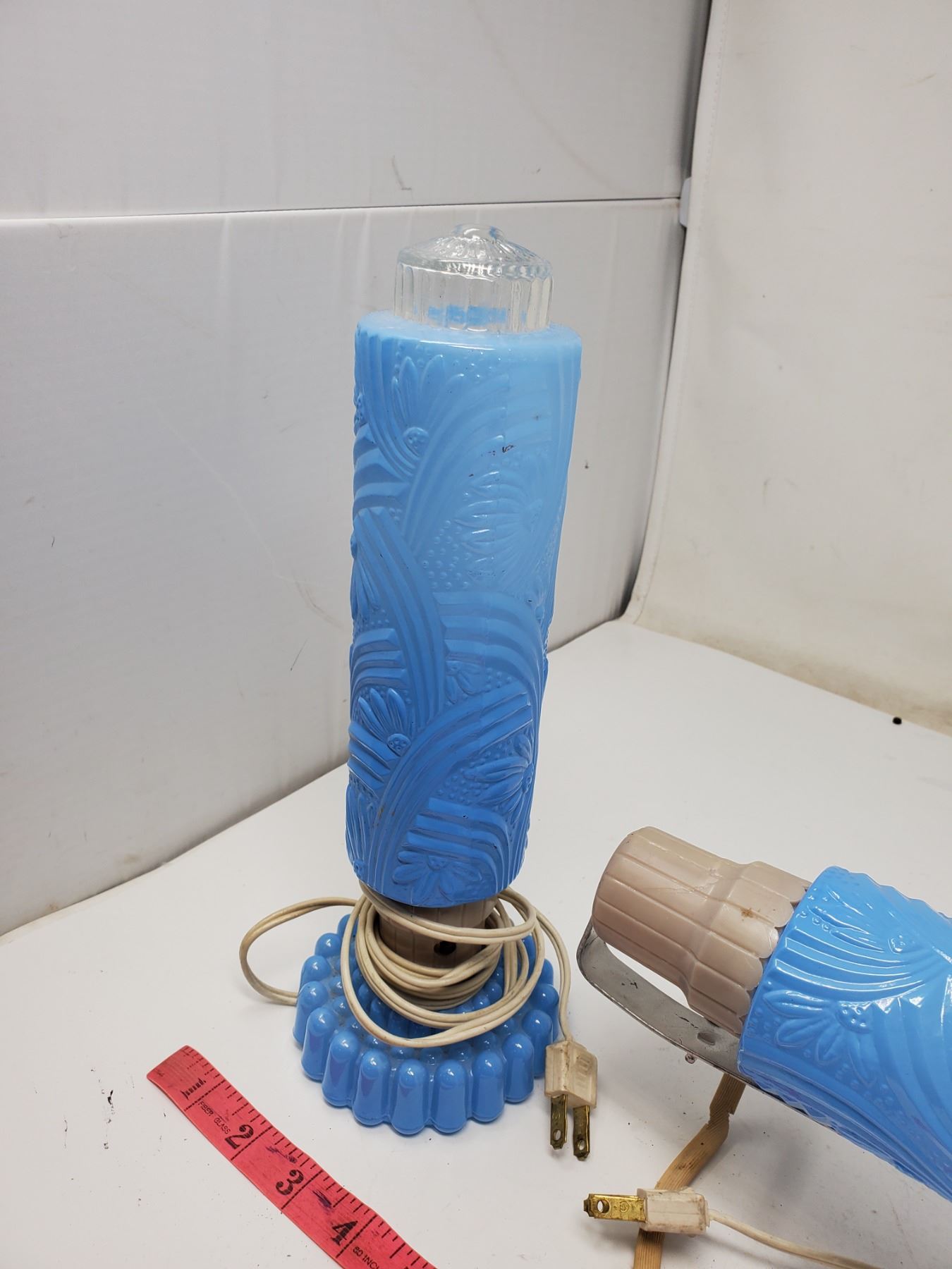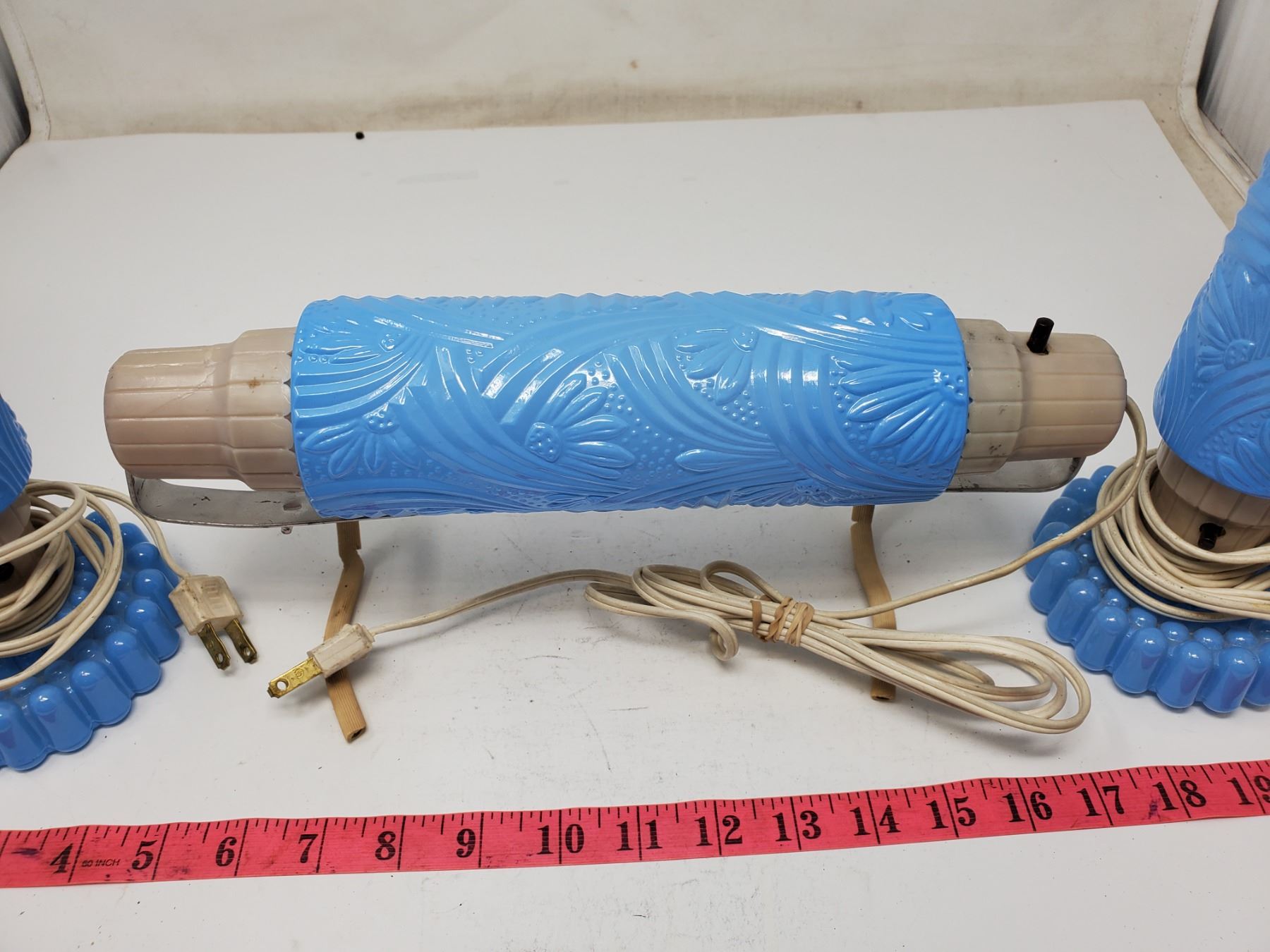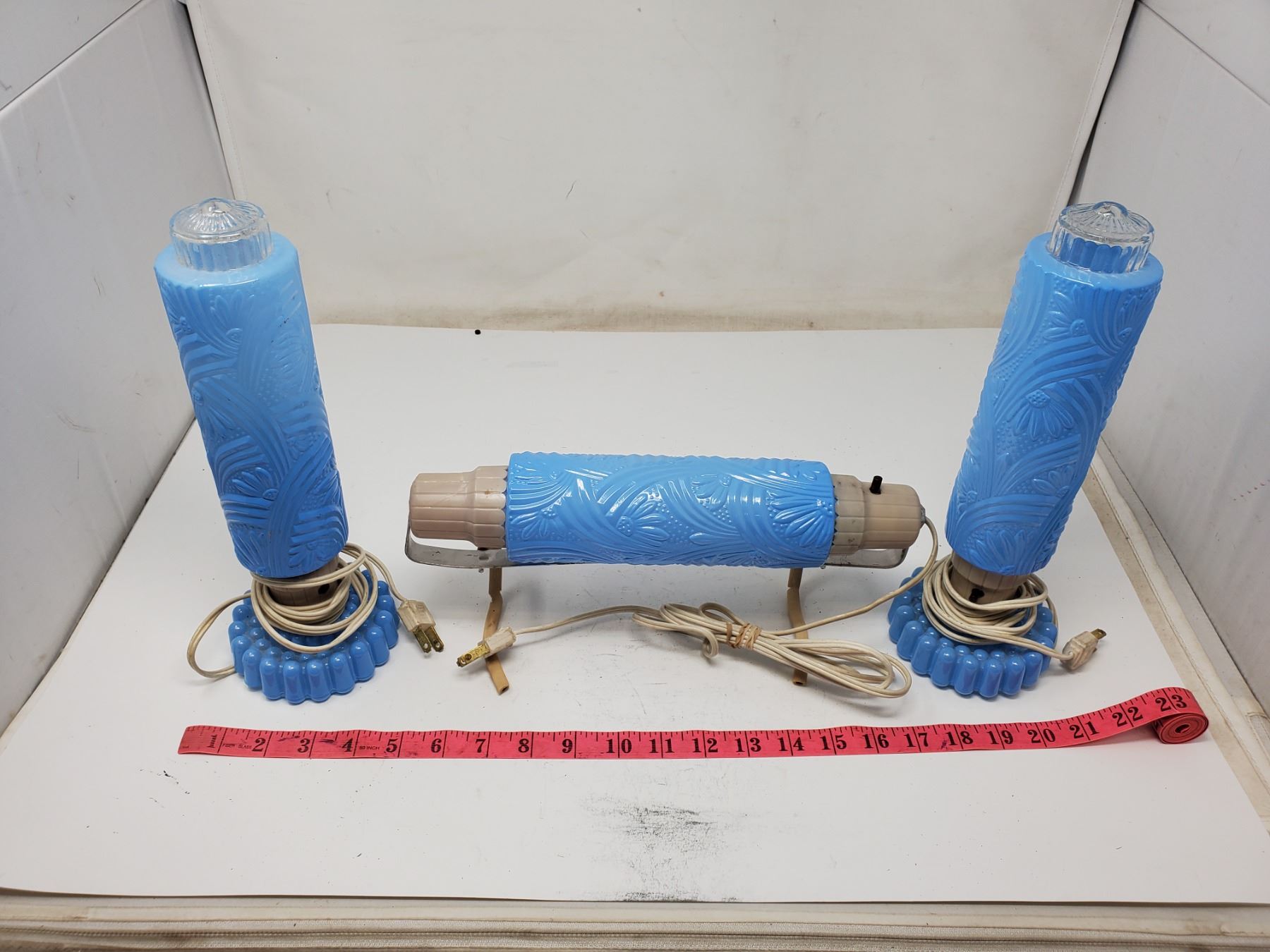 BLUE GLASS HEADBOARD & TABLE LAMPS