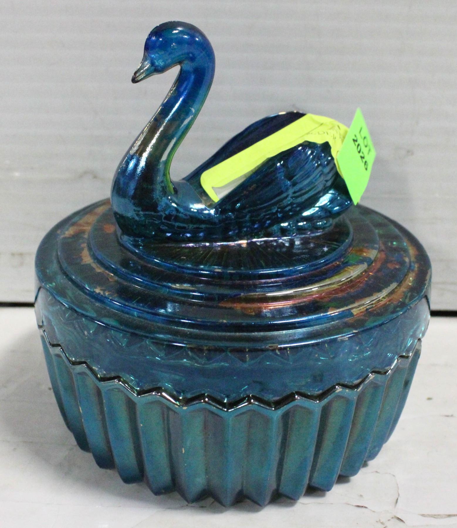 BLUE GLASS SWAN POWDER DISH -LIPSTICK HOLDER