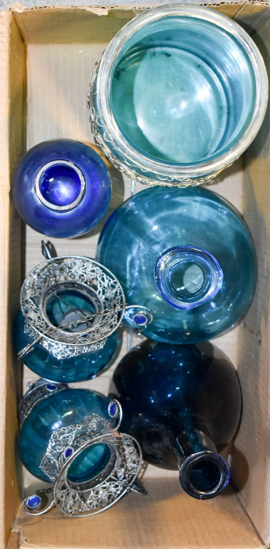 BLUE GLASS VASES AND CANDLE HOLDERS