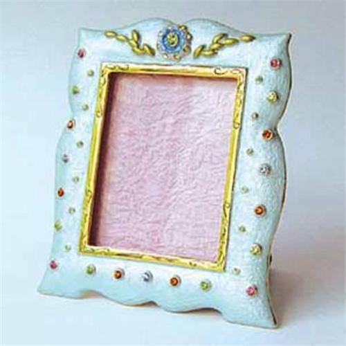 BLUE GOLD SWAROVSKI CRYSTAL PICTURE FRAME 2" X 2"