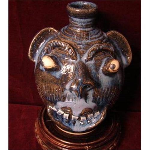 BLUE GROTESQUE FACE JUG,NORTH CAROLINA #1378987