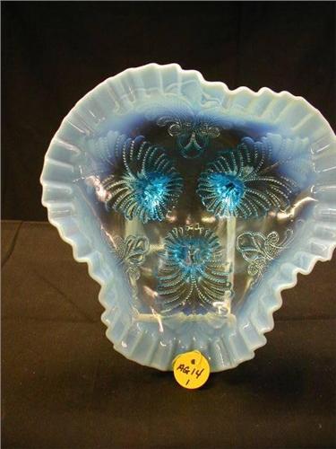 BLUE IRIDESCENT 3 MOLD RUFFLE EDGE FEATHER DESIGN FTD. BOWL