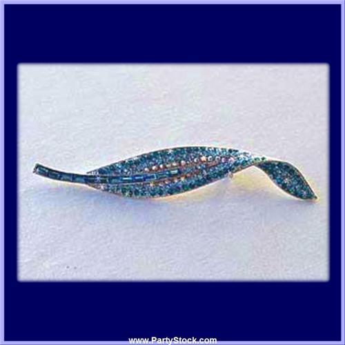 BLUE LEAF PIN BROOCH 24K GOLD SWAROVSKI CRYSTALS