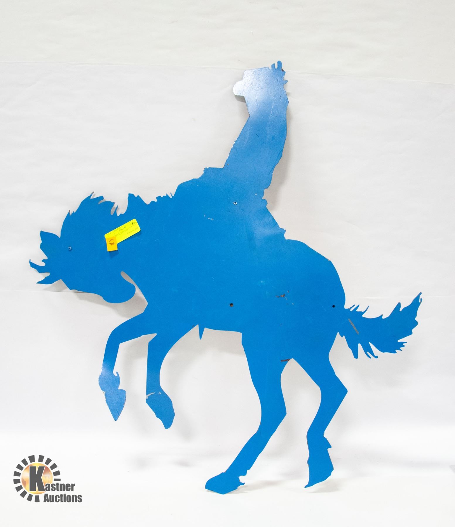 BLUE METAL CUT OUT OF COWBOY RIDING HORSE