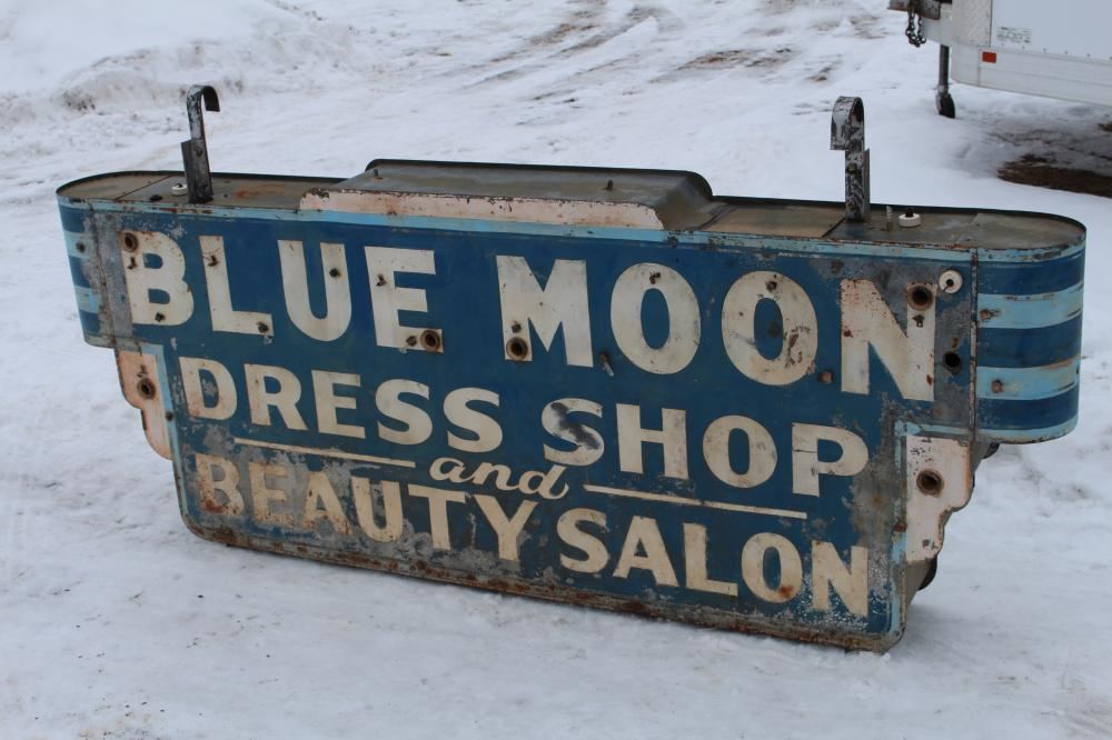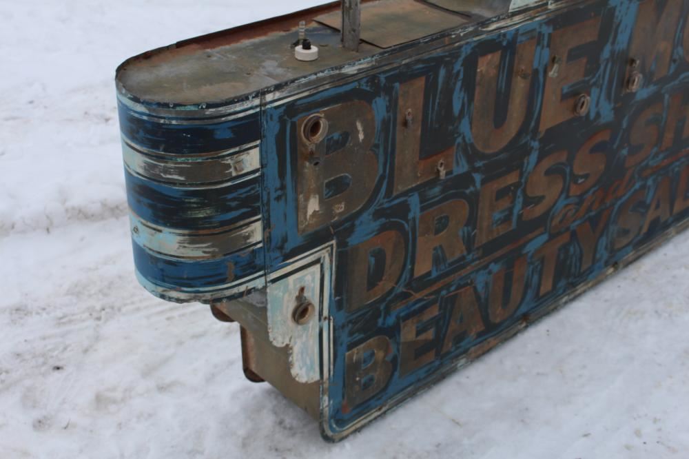 2 SIDED, PAINTED TIN. 96 X 36 X 10 1/2. LOTS OF WEAR AND PATINA. APPROXIMATE SHIPPING COST $150 TO $375. THIS ITEM IS GUARANTEED TO BE OLD.