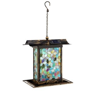 BLUE MOSAIC GLASS BIRDFEEDER - 10" x 9" x 6" - IRON, GLASS & SHEET METAL