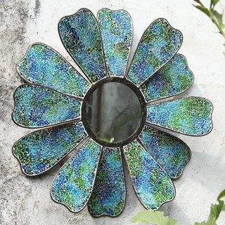 BLUE MOSAIC GLASS FLOWER MIRROR - 20.5" x 20.5" x 3" - IRON, GLASS & SHEET METAL