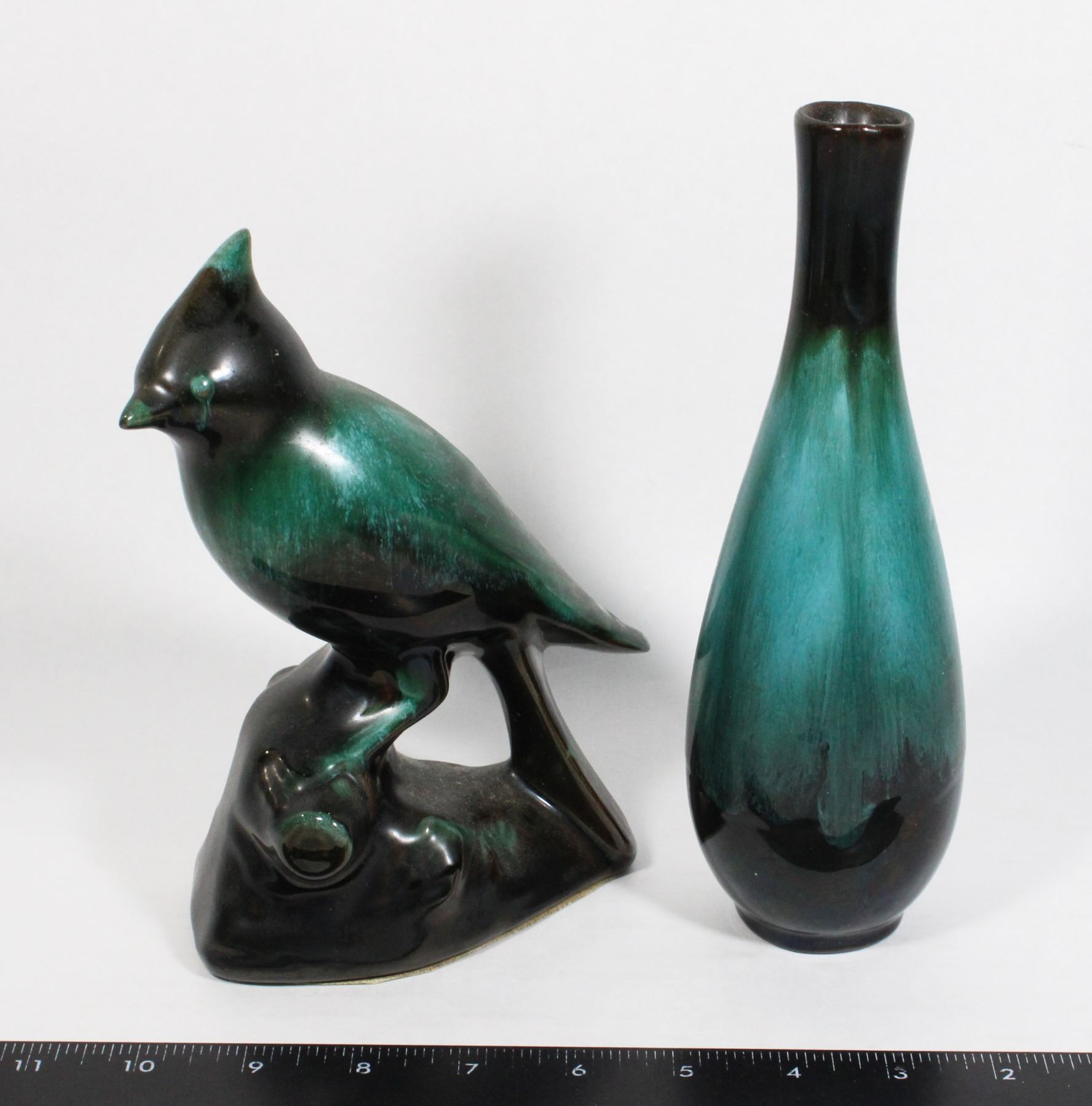 FIGURINE ALONG WITH BLUE MOUNTAIN POTTERY VASE