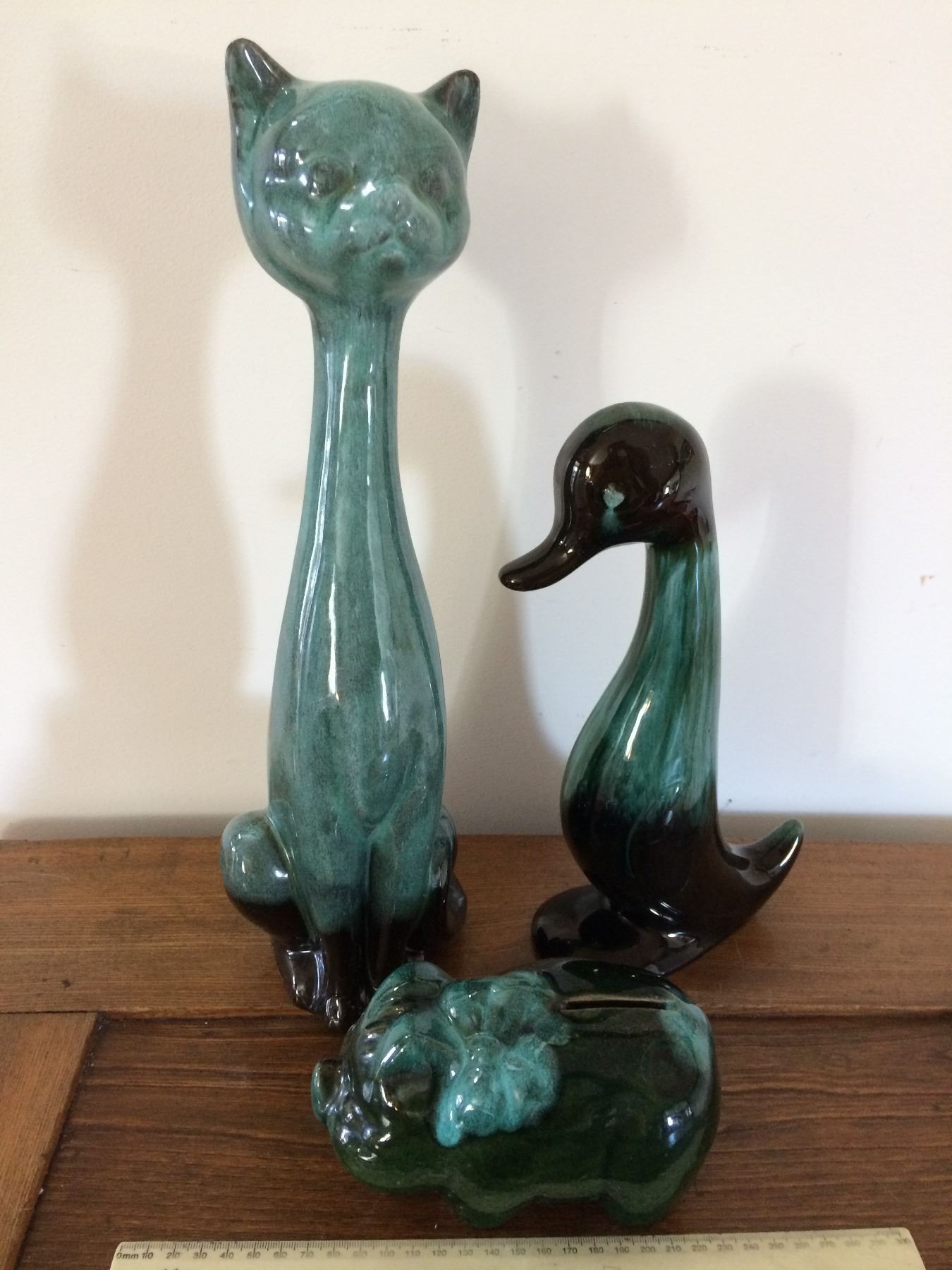 BLUE MOUNTAIN SITTING CAT, PIGGY BANK, CALL DUCK