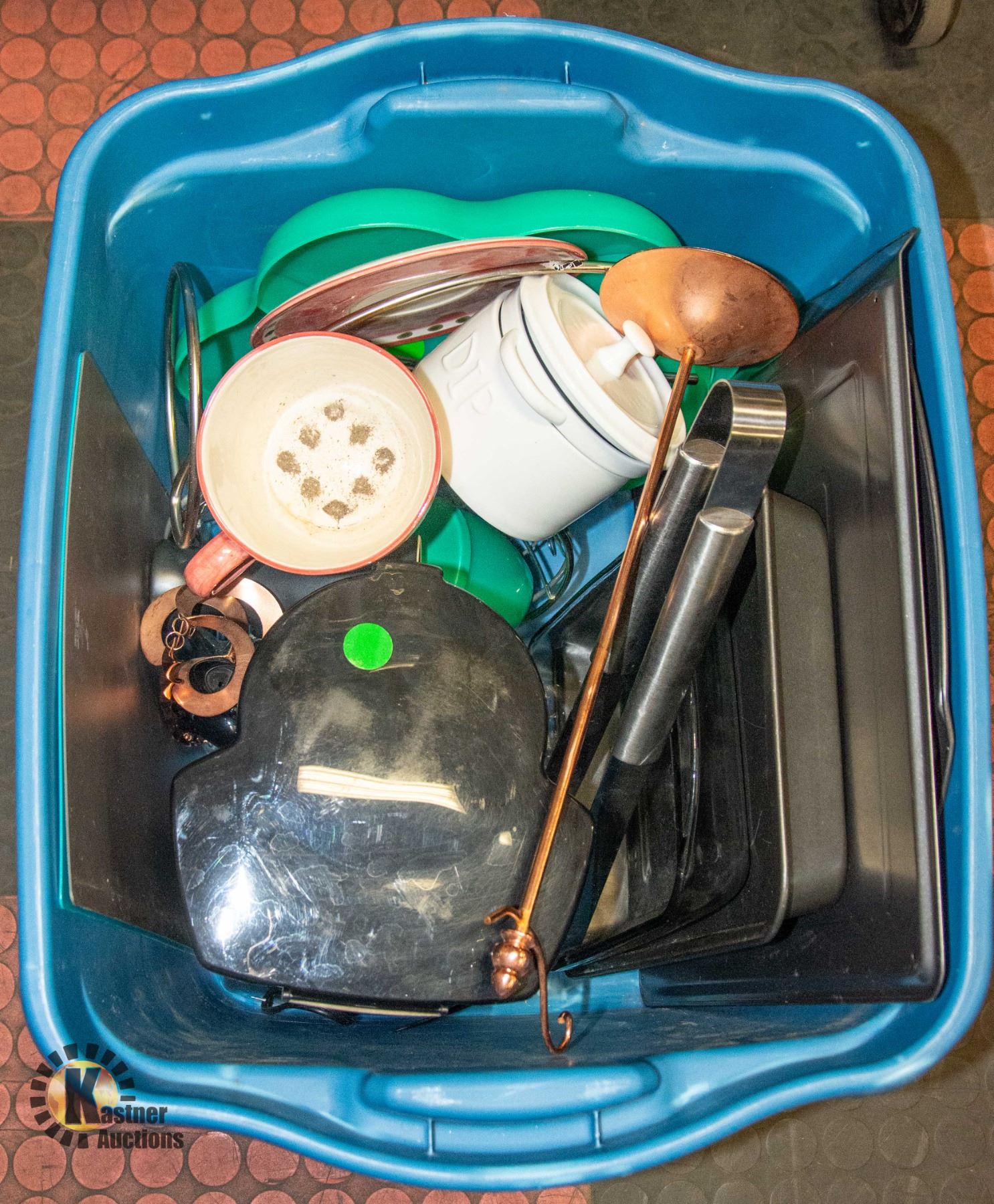 BLUE RUBBERMAID TOTE, CRYSTAL CREAM &