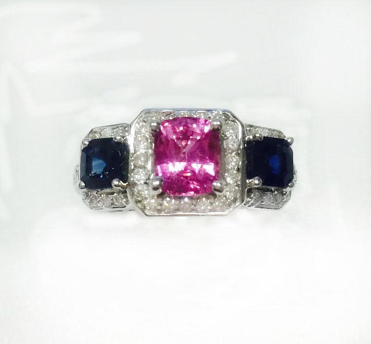 BLUE SAPPHIRE 1.09CT, 14K W/G RING 5.69GRAM / DIAMOND RD 0.50CT / PINK SAPP 1.56CT