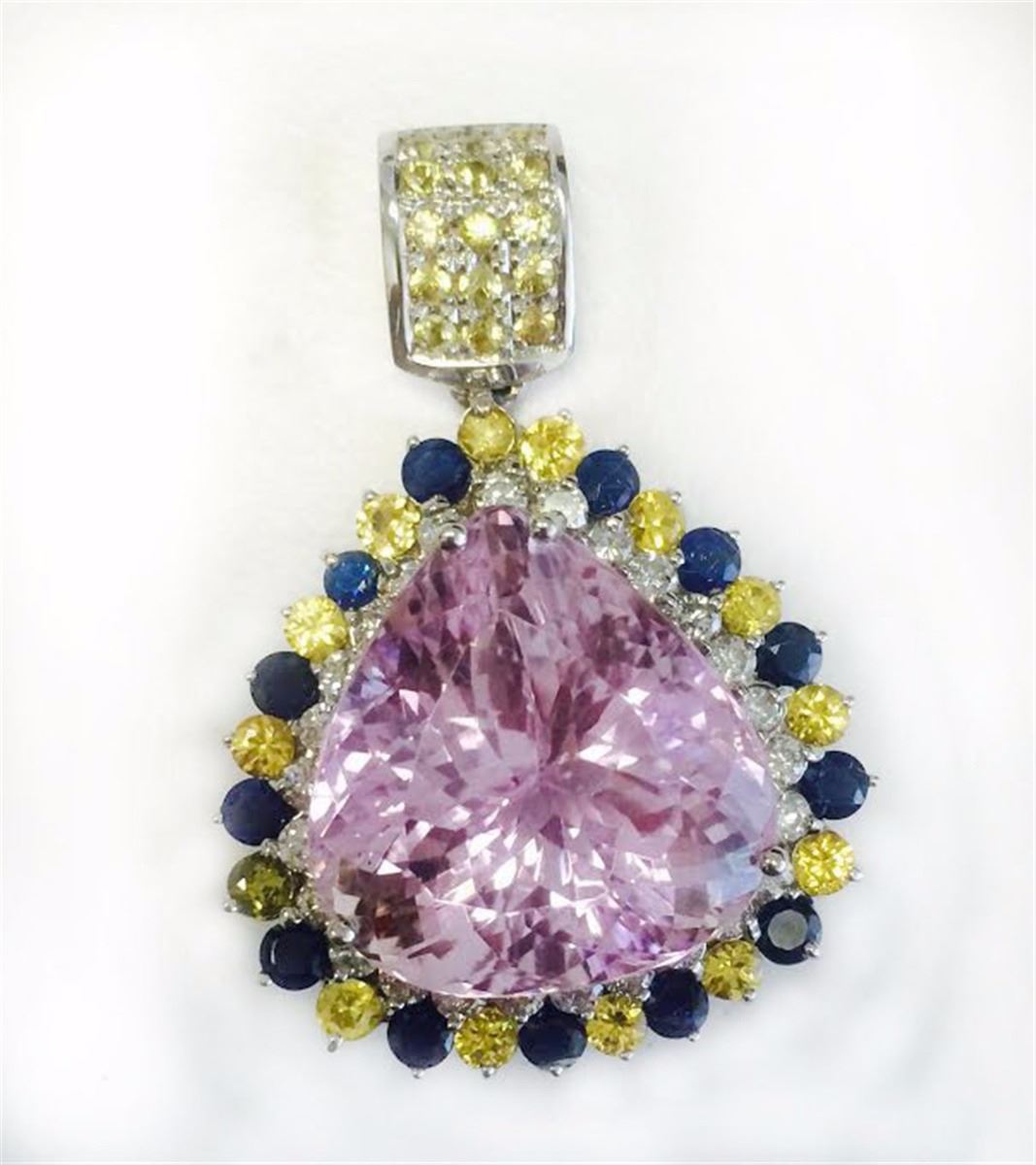 BLUE SAPPHIRE 2.64CT / YELLOW SAPPHIRE 2.35CT / KUNZITE 22.85CT, 14K W/G PENDANT 22.85GRAM / DIAMOND RD 0.79CT