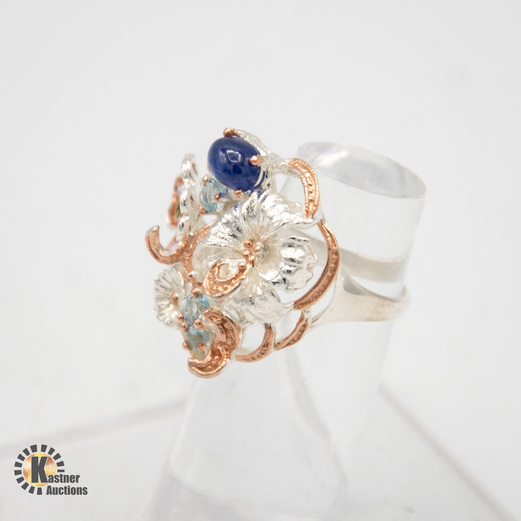 BLUE SAPPHIRE GEMSTONE .925 SILVER RING, SIZE 6