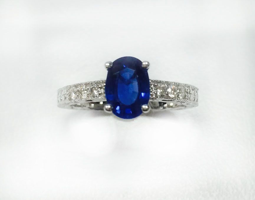 BLUE SAPPHIRE OVAL 1.65CT, 14K W/G RING 3.05GRAM / DIAMOND RD 0.13CT