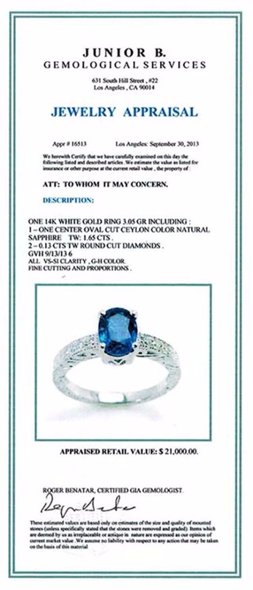 BLUE SAPPHIRE OVAL 1.65CT, 14K W/G RING 3.05GRAM / DIAMOND RD 0.13CT