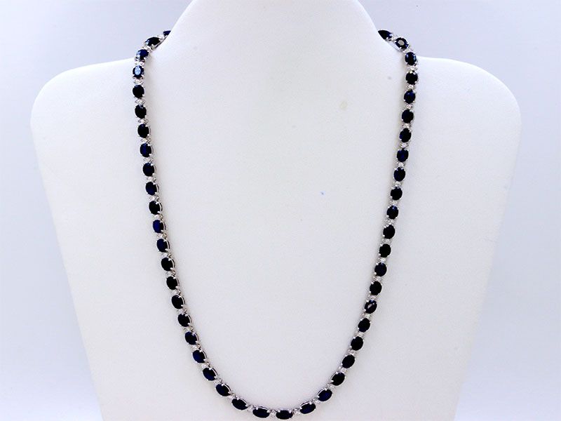 BLUE SAPPHIRE OVAL 15.65 ct 14K W/G NECKLACE 17.12GRAM / DIAMOND 1.42CT