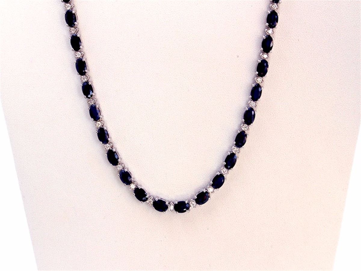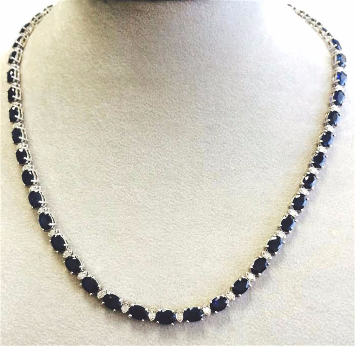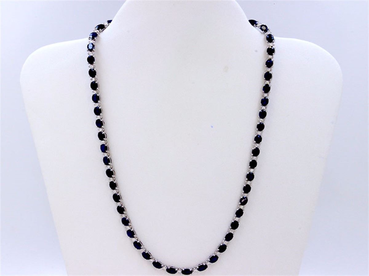 BLUE SAPPHIRE OVAL 25.31CT, 14K W/G NECKLACE 17.61GRAM / DIAMOND 1.52CT