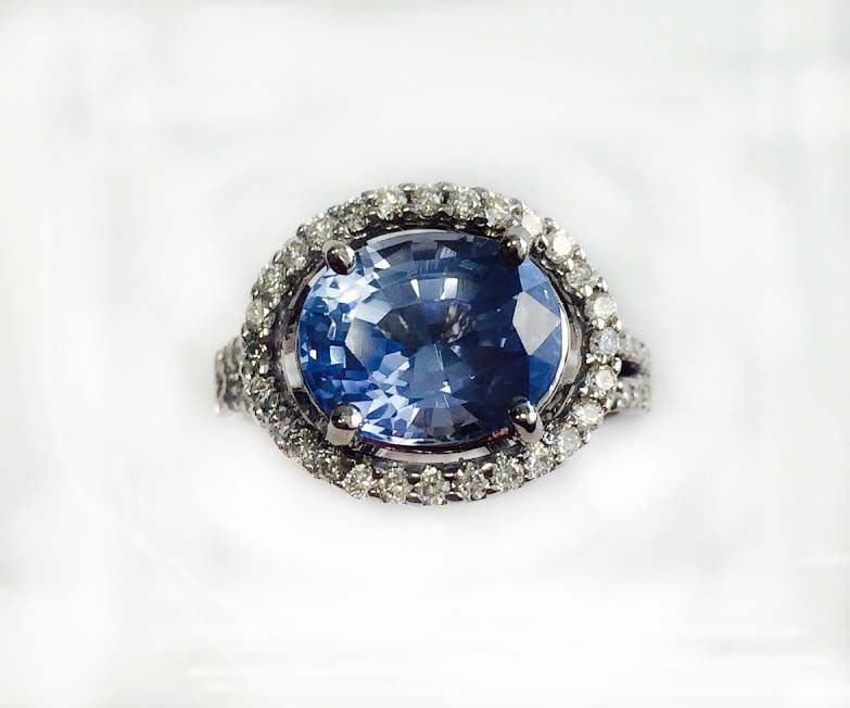 BLUE SAPPHIRE OVAL 4.21CT, 14K W/G RING 5.26GRAM / DIAMOND RD 0.30CT