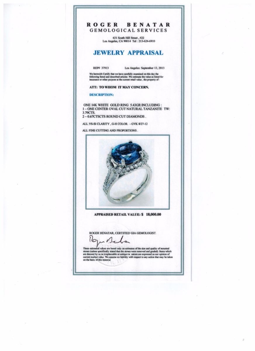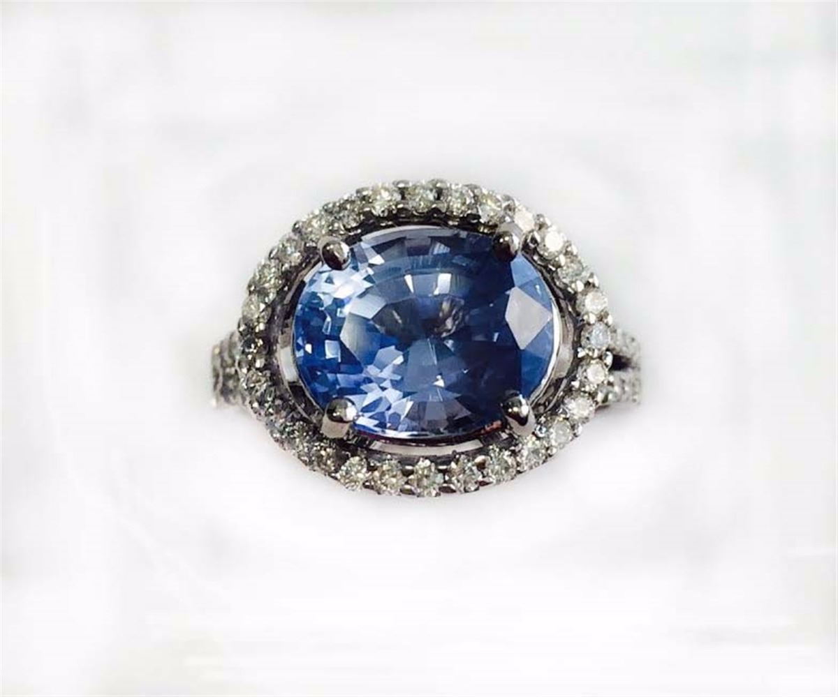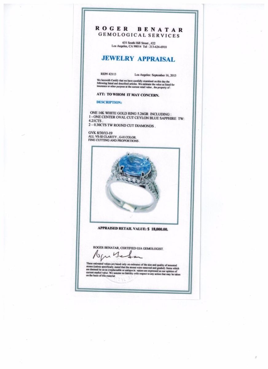 BLUE SAPPHIRE OVAL 4.21CT, 14K W/G RING 5.26GRAM / DIAMOND RD 0.30CT