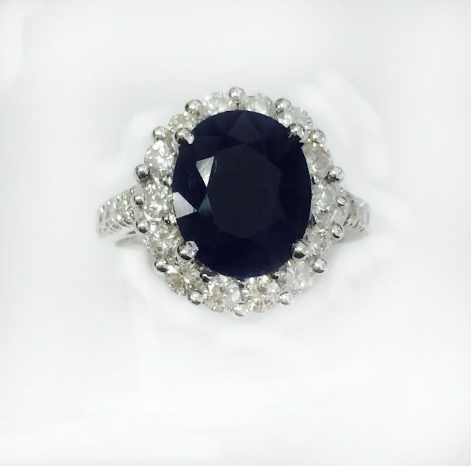BLUE SAPPHIRE OVAL 4.57CT, GLS 9350 14K W/G RING 6.79GRAM / DIAMOND RD 1.12CT