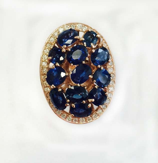 BLUE SAPPHIRE OVAL 5.25CT, 14K R/G RING 7.19GRAM / DIAMOND RD 0.39CT