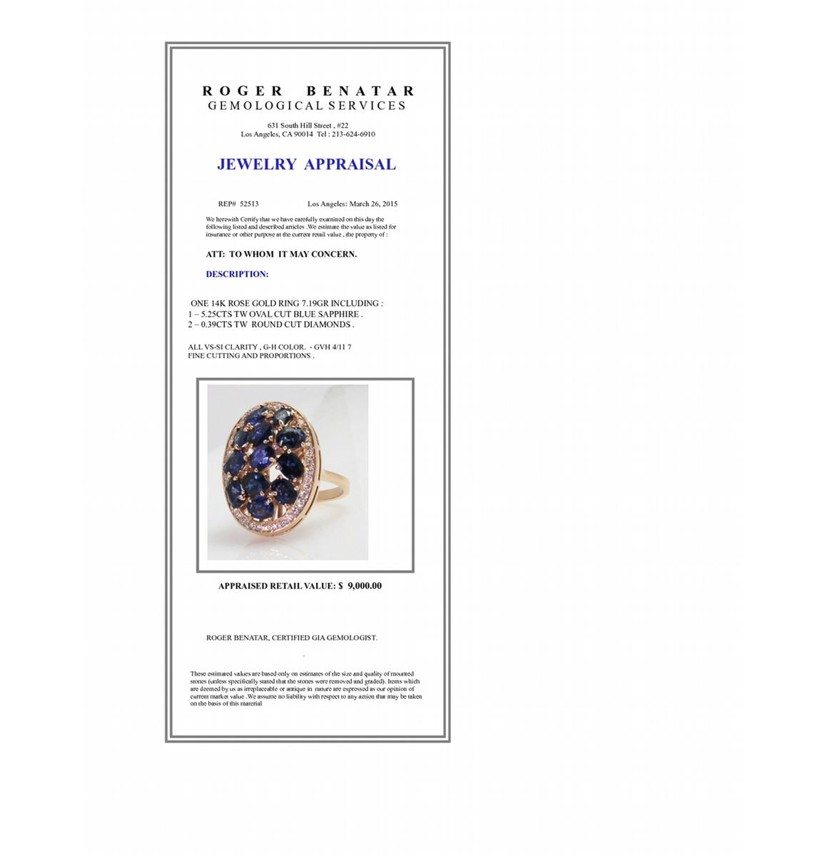BLUE SAPPHIRE OVAL 5.25CT, 14K R/G RING 7.19GRAM / DIAMOND RD 0.39CT