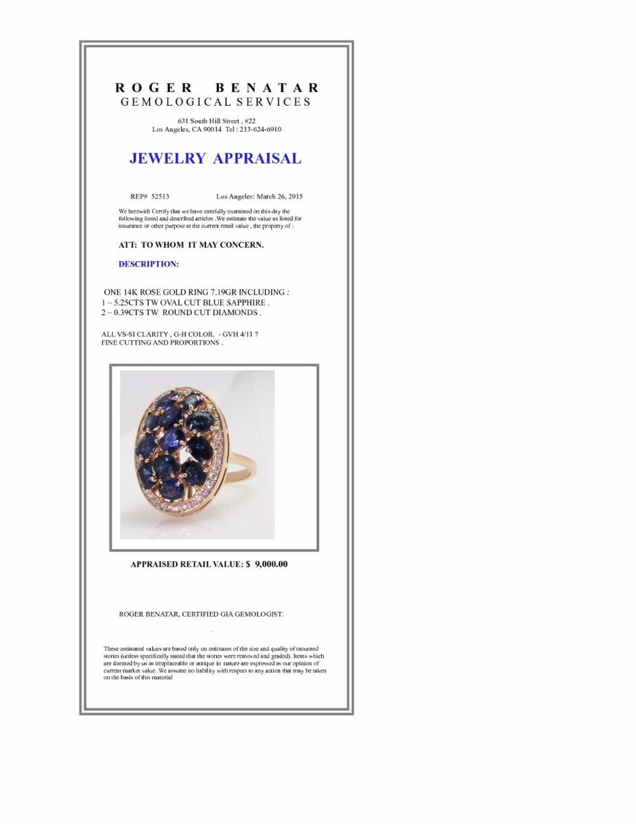 BLUE SAPPHIRE OVAL 5.25CT, 14K R/G RING 7.19GRAM / DIAMOND RD 0.39CT