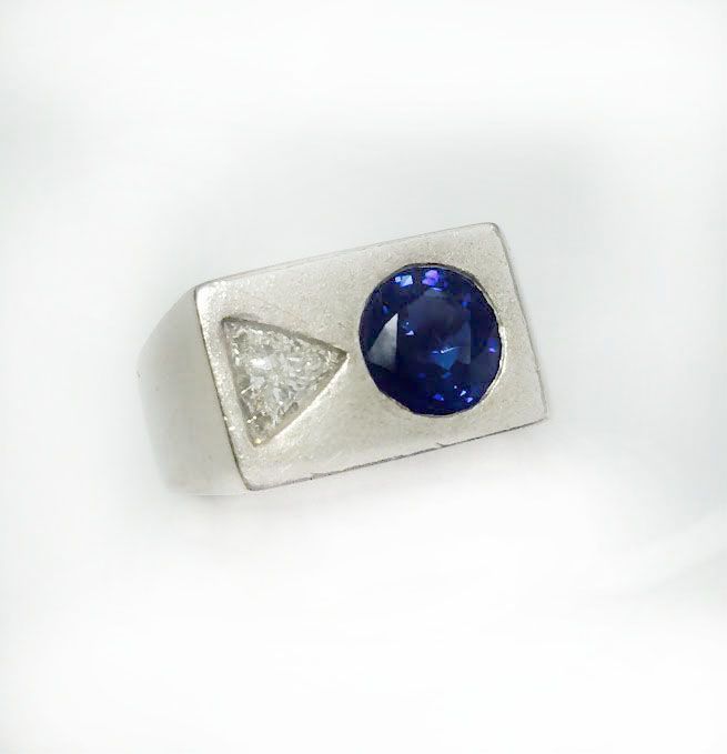 BLUE SAPPHIRE RD 1.50CT, GLS 9188 PLATINUM 19.65GRA / DIAMOND TRILION 0.60CT