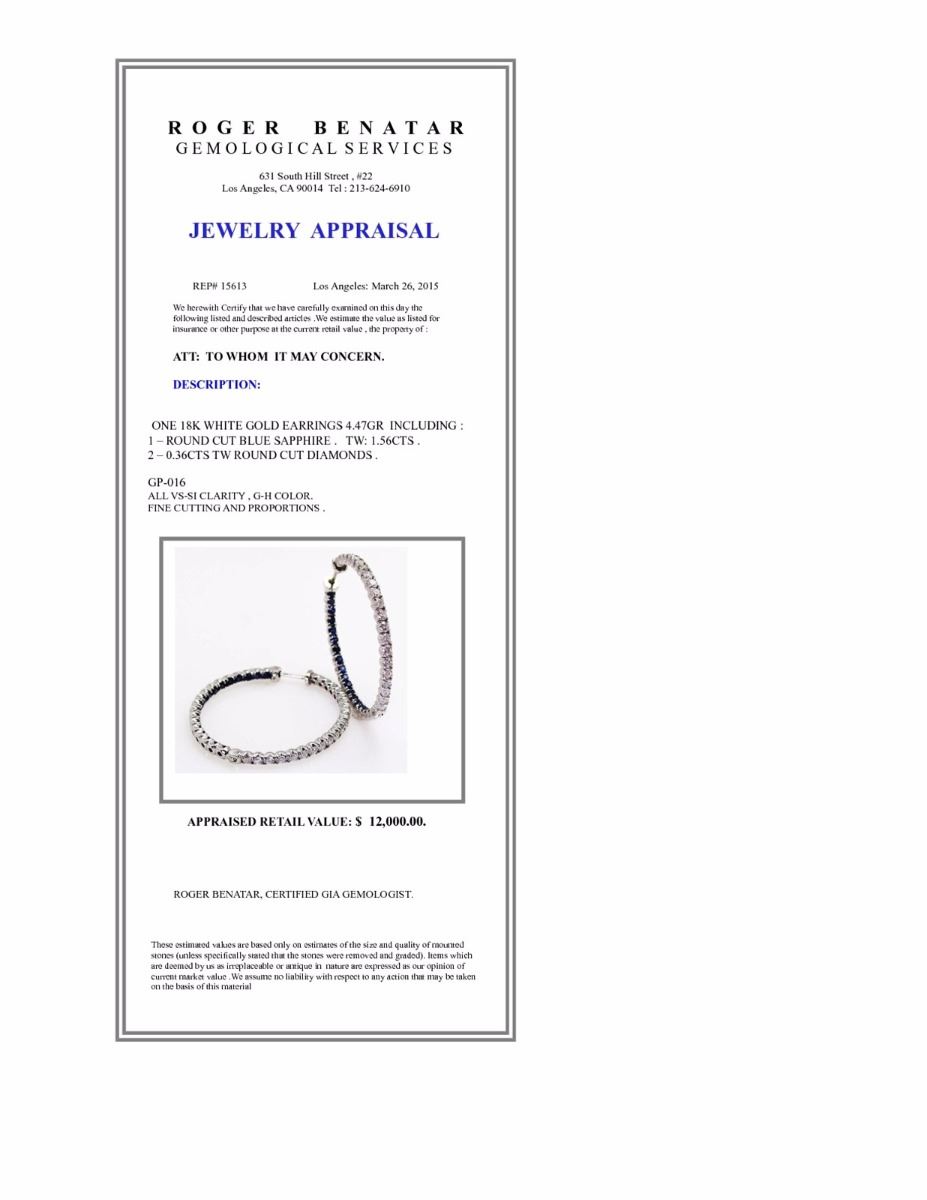 BLUE SAPPHIRE RD 1.56CT, 18K W/G EARRING 4.47GRAM / DIAMOND RD 0.36