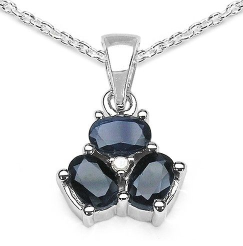 1.97 CARAT GENUINE BLUE SAPPHIRE & WHITE DIAMOND .925 STERLING SILVER PENDANT - METAL INFORMATION: .925 STERLING SILVER FINISH: HIGH SILVER POLISH ITEM: PENDANT TOTAL CTW: 1.97CTW STONE INFORMATION: DIAMOND WHITE QUANTITY: 1 SHAPE / SIZE: ROUND/1.50MM SAPPHIRE BLUE QUANTITY: 3 SHAPE / SIZE: OVAL/6X4MM