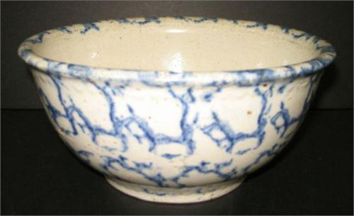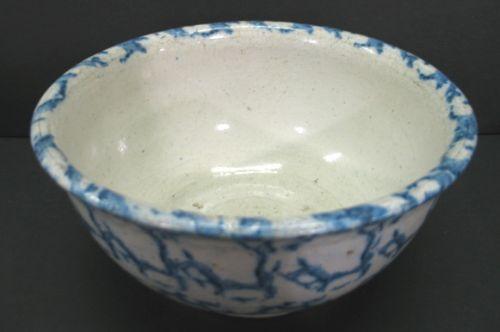 BLUE SPONGEWARE MIXING BOWL. Excellent condition with no cracks or chips. 4.75” H, 10” Dia.