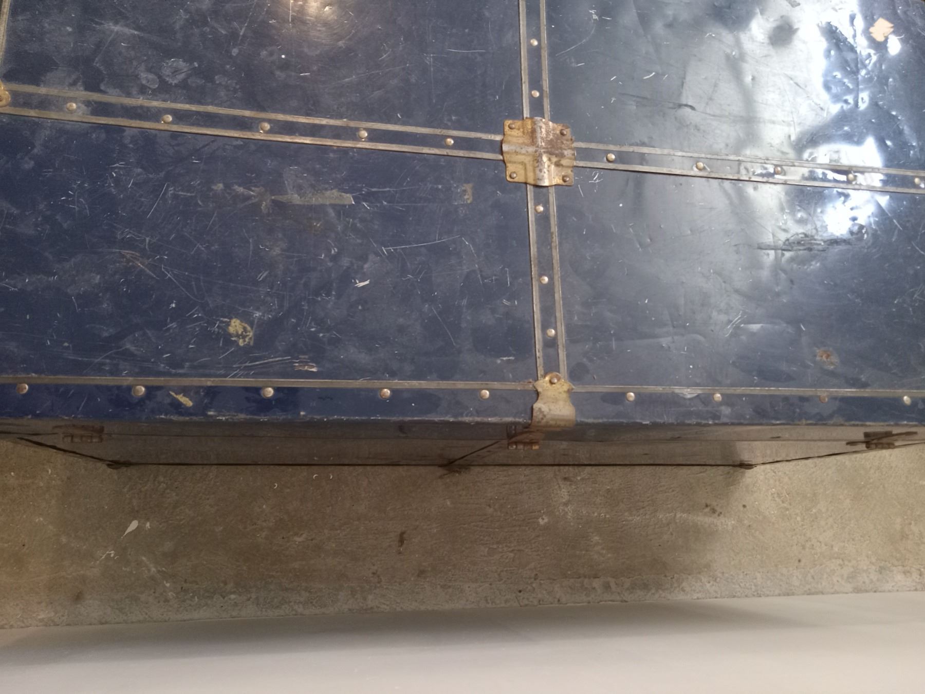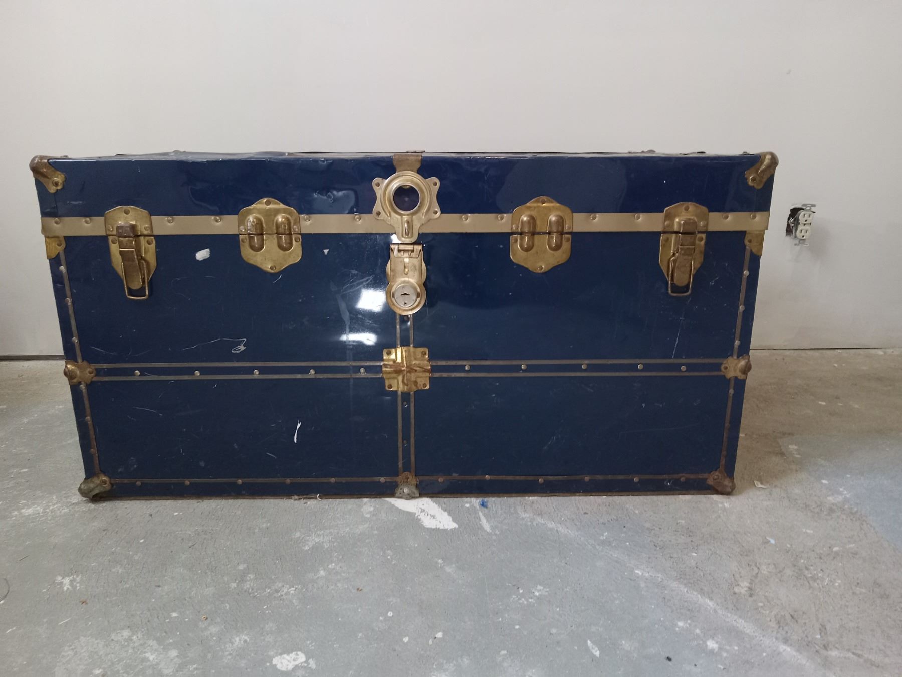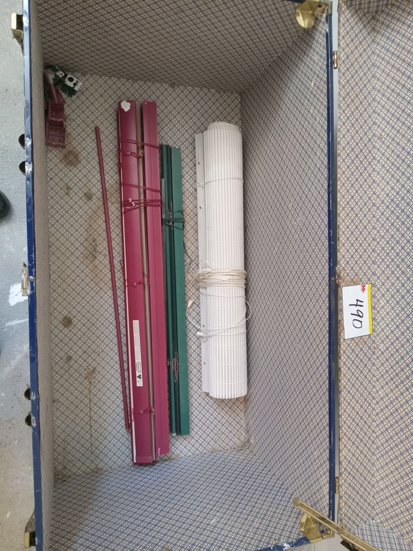 BLUE STEEL STEAMER TRUNK & SETS of BLINDS w/ HDWR.