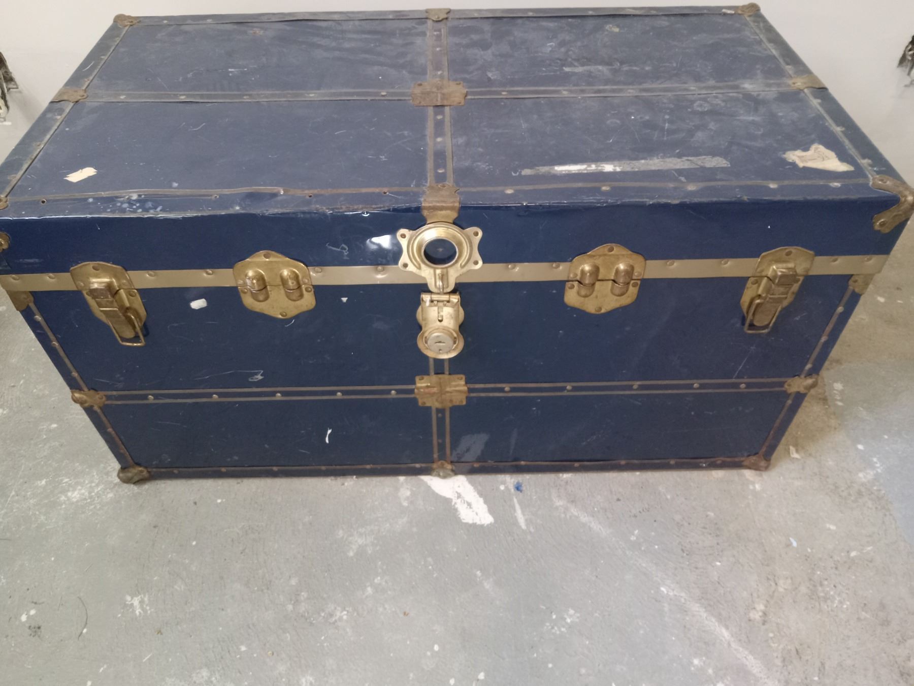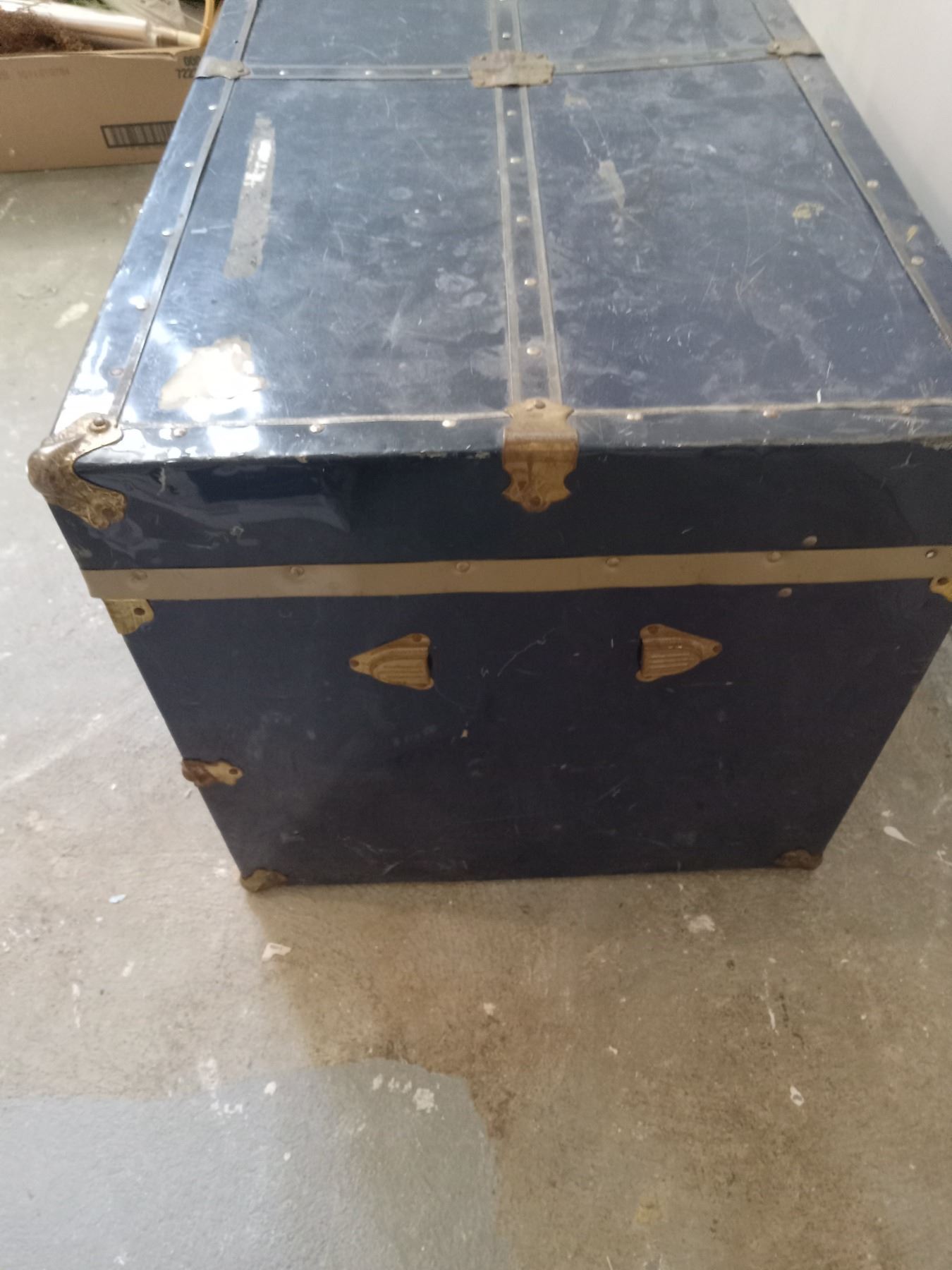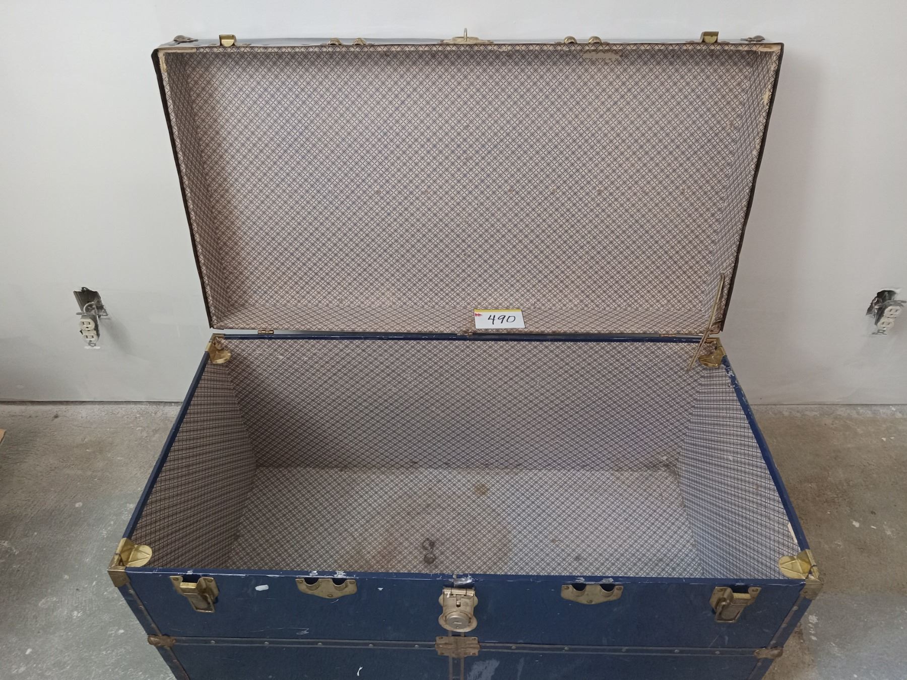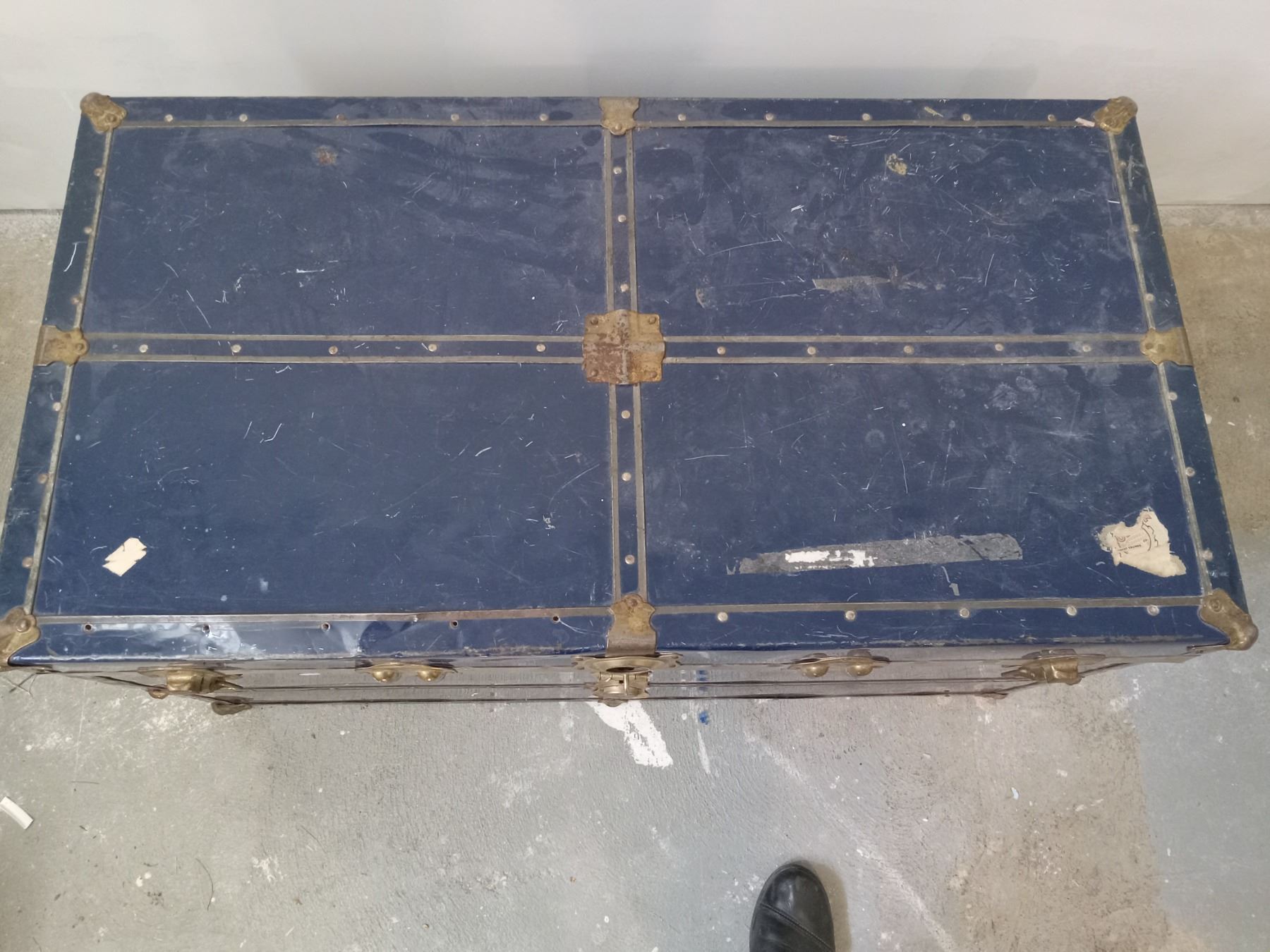 BLUE STEEL STEAMER TRUNK & SETS of BLINDS w/ HDWR.