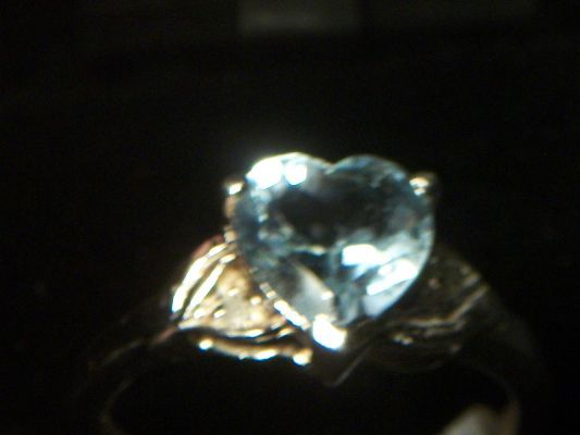BLUE TOPAZ HEART SILVER DIAMOND RING SIZE 6.5