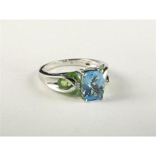 BLUE TOPAZ, PERIDOT AND DIAMOND LADY'S RING 14K